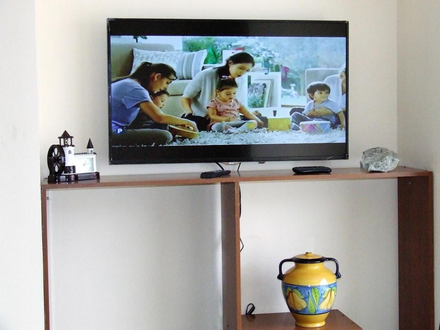 The apartment provides guests with a terrace, mountain views, a seating area, satellite flat-screen TV, a fully equipped kitchen with an oven and a microwave, and a private bathroom with shower. A fridge and kitchenware are also offered, as well as a coffee machine. At the apartment complex, the units have bed linen and towels.